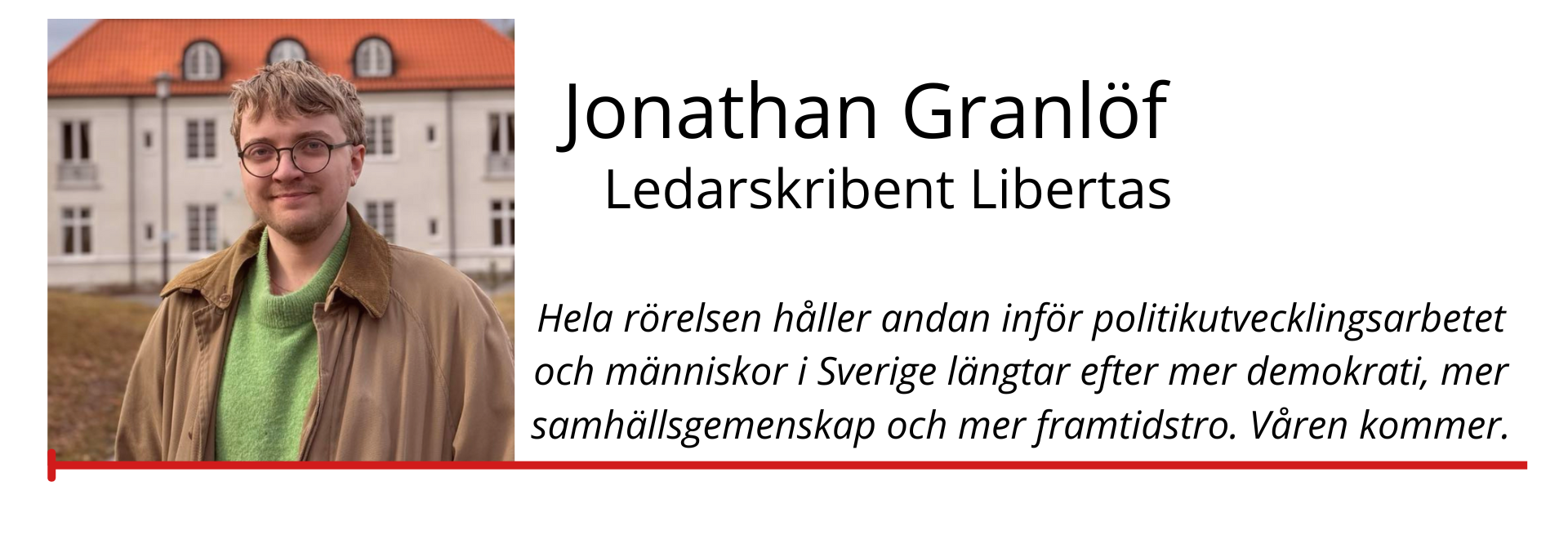 Men svaret till valkyrian finns i en alltför enkel, men alltför radikal handling. Beslutet var och en av oss tar att trots iskylan ta steget och ställa oss i ett Första maj-tåg. Trots att vi fryser visar denna handling, om än tidvis pliktskyldigt, att i den isande kylan finns en liten låga som brinner. Det är någonting som händer nu, vinden börjar kännas mildare, den kalla solens strålar börjar plötsligt värma. Det må finnas snödrivor kvar men plötsligt syns skott i den röda rosenbusken. Och ja, bortom metaforen finns livet, och 1 Maj 2024 så lyste vi. Trots hot, trots hat och trots en SD-regering som vill riva ned allt vi älskar med Sverige. De tror att de kan attackera arbetarrörelsen och civilsamhället till underkastelse, ställa människa mot människa och korta våra tåg och med det våra framtidsdrömmar. Men när arbetarrörelsen attackeras från alla håll och kanter väcks något till liv. En latent impuls från rörelsens begynnelse. Agitatorerna från Sveriges demokratisering viskar i luften, ropen från kvinnorna som slogs mot överheten för sina rättigheter skallar med oss och folkbildningens lärdomar uppmuntrar oss att bli bättre. Något vaknar till liv. Och med denna överlevnadsimpuls vaknar något helt oförväntat. En ny socialdemokrati.