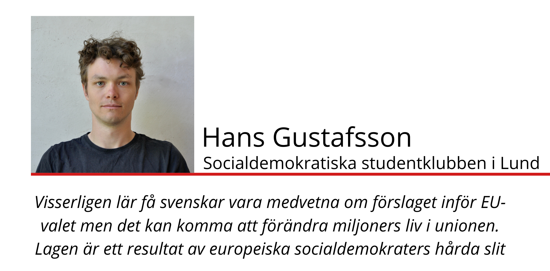 Visserligen lär få svenskar vara medvetna om förslaget inför EU-valet men det kan komma att förändra miljoners liv i unionen. Lagen är ett resultat av europeiska socialdemokraters hårda slit för att inte låta så kallade ”tech”-företag kringgå och slå sönder principerna för en ordnad och värdig arbetsmarknad. Vi ska vara stolta över vår framgång och vi ska äga den. Väljarna efterfrågar berättelser om våra egna konkreta politiska framgångar. Passa på att påpeka för väljarna i allmänhet att vi håller på att få bukt med problemen med gigekonomin och nästa gång du (kanske) beställer mat via Foodora var inte rädd att fråga budet om hen hört att Socialdemokraterna i Europa snart garanterar möjlighet till anställningsskydd och en mänsklig kontakt hos arbetsgivaren.